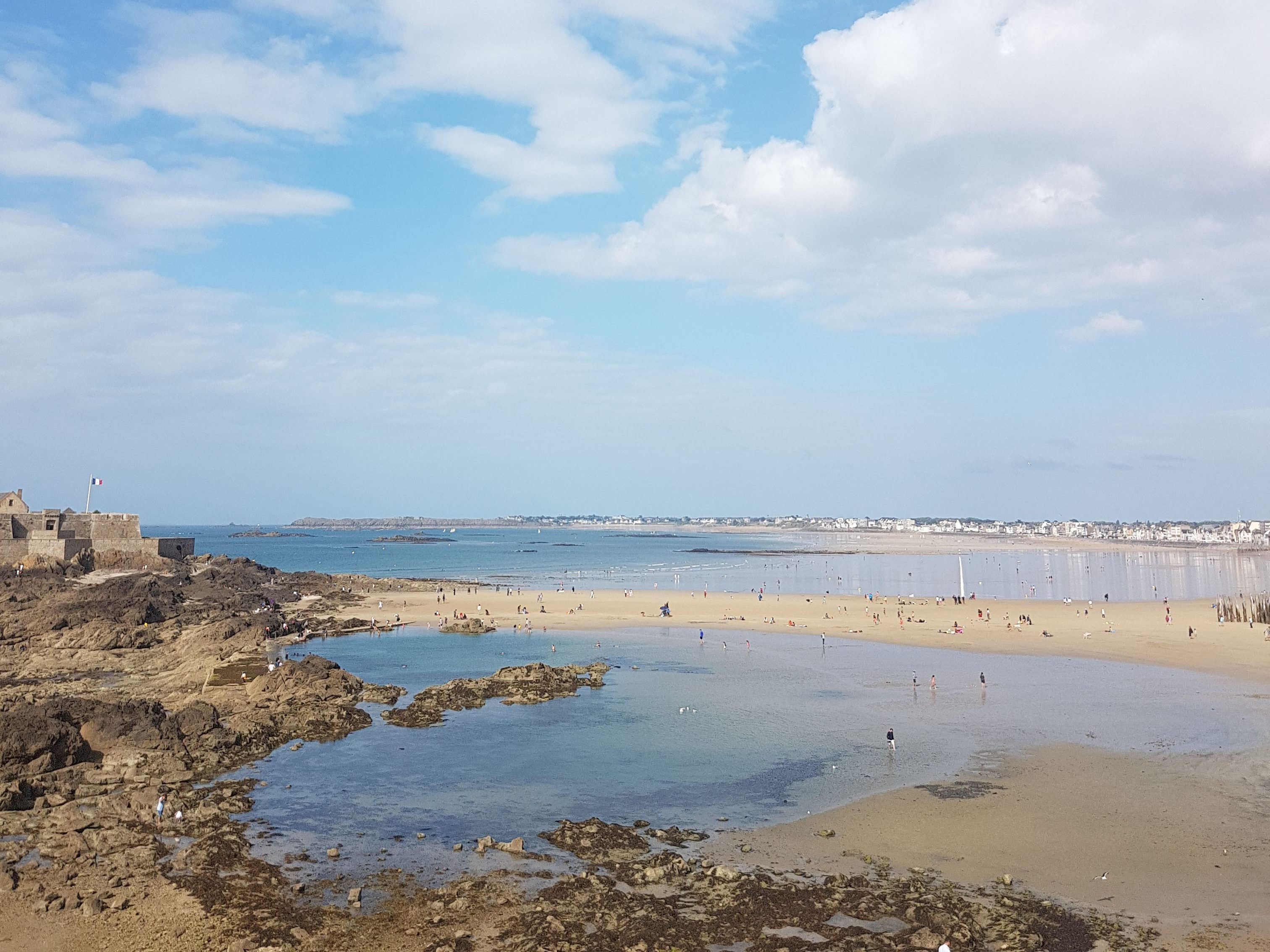 Le lendemain, direction Saint-Malo ! Et là, changement d’ambiance. On passe des chevaliers aux remparts de la ville fortifiée. J’ai adoré flâner dans la ville intra-muros, me balader le long des remparts, et respirer l’air frais de la mer. Et puis bon, un petit passage par la plage s’imposait !